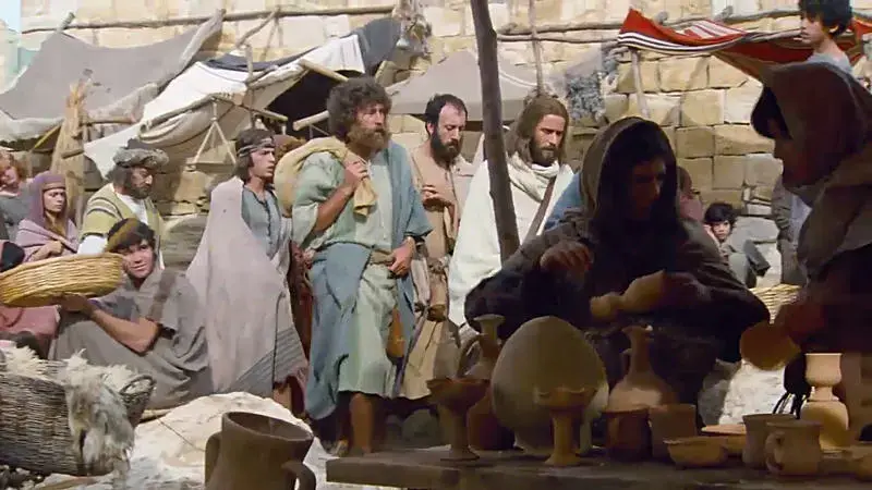 0:5652 Para Prajurit Mengundi Jubah Yesus